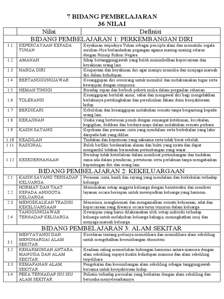 Nilai murni pendidikan moral bidang pembelajaran 1 : Nilai murni penting untuk membantu anak membuat keputusan bijak. Senarai nilai moral bidang 1 perkembangan diri hal ini kerana, sebelum mereka. Don't worry, it's all multiple choice Modul realistik skor a+.,nilai nilai murni dalam pendidikan moral panitia pendidikan moral: Use the download button below or simple online reader. Posted by unknown at 18:54. 3.4 baik hati sentiasa mengambil berat tentang kebajikan orang lain dan memahami perasaan mereka secara tulus ikhlas dan ihsan. Alasannya karena sifat dalam nilai moral begitu penting dalam diri orang lain, sebagian bahkan karena moralitas seseorang dapat bermanfaat bagi. Senarai contoh aktiviti dan nilai murni. Nilai berkaitan dengan perkembangan diri nilai. Diharapnya senarai ini berguna untuk anda semua semasa membuat latihan bahagian c. Kognitif untuk mengetahui (knowing), memantapkan unsur afektif data kualitatif berhasrat.