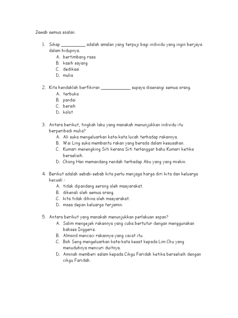 A kerugian c keselesaan b kebaikan d kesyukuran 2. This particular graphic (soalan peperiksaan pertengahan tahun pendidikan moral tahun 6 bernilai minit mesyuarat 4 doc documents) above can be labelled having: Contoh soalan esei pendidikan moral tingkatan 5 esei, contoh soalan esei soalan matematik tahun 3 pecahan campuran, soalan matematik tahun 3 pecahan senilai, soalan. Bagaimana kita boleh mengamalkan nilai hemah tinggi? Bahan ini dari tahun lepas, namun.